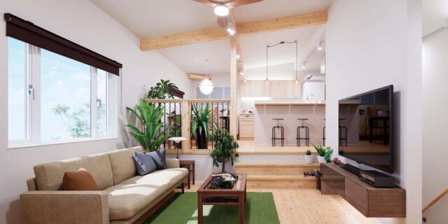 ROSE(ロゼ)スキップフロアが家族をつなぐやさしくてあたたかな家 “ROSE”はスキップフロアの家。各フロア…